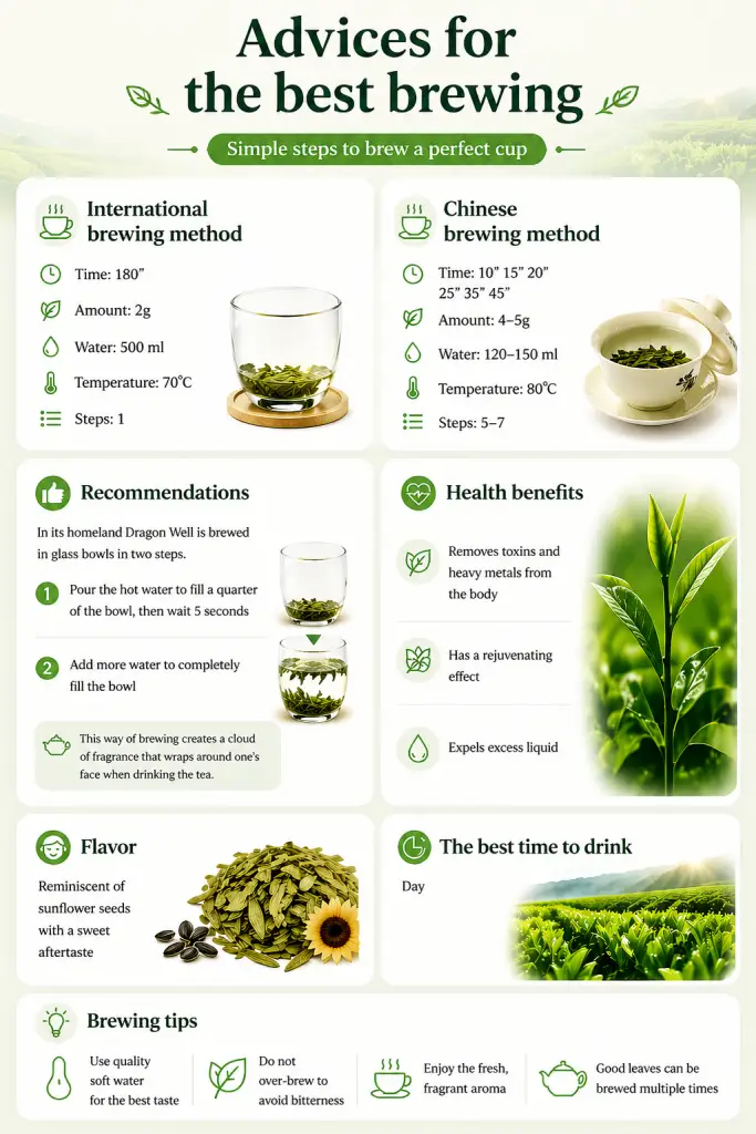 This tea has a very interesting history. There is mention of this aromatic tea from Anji in Lu Yu’s monograph “The Classic of Tea”. It was the favorite beverage of the emperors during the Song dynasty, but for some reason, cultivation of tea bushes in this area ceased. It was only in the 20th century, during an expedition, that the old tea bushes were found, which, with the support of the state, began once again to produce Anji Baicha.